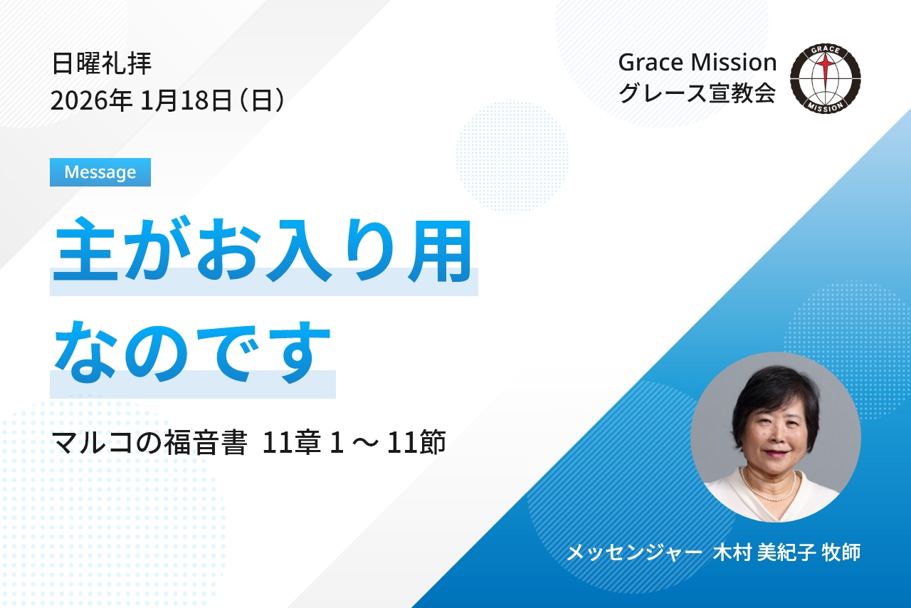 【日曜礼拝メッセージ】「主がお入り用なのです」マルコの福音書 11章 1 ~ 11節【大阪府・八尾市・グレース宣教会・キリスト教会】 2026/01/18 【日曜礼拝概要】 聖書箇所:マルコの福音書 11章 1 〜 11節 タイトル:「主がお入り用なのです」 説教者:木村 美紀子 牧師
