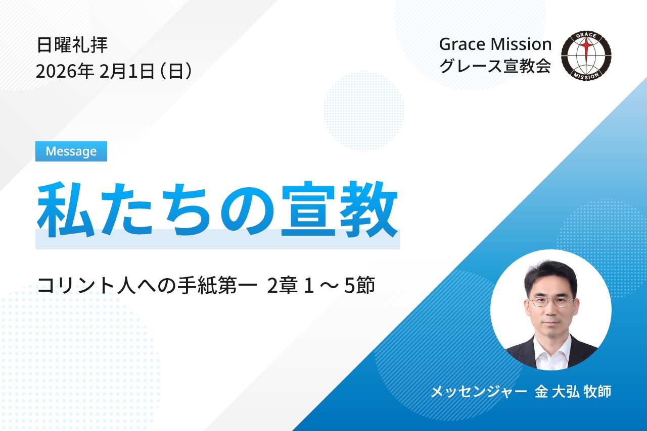 【日曜礼拝メッセージ】「私たちの宣教」コリント人への手紙第一 2章 1 ~ 5節【大阪府・八尾市・グレース宣教会・キリスト教会】 2026/02/01 【日曜礼拝概要】 聖書箇所:コリント人への手紙第一 2章 1 〜 5節 タイトル:「私たちの宣教」 説教者:金 大弘 牧師